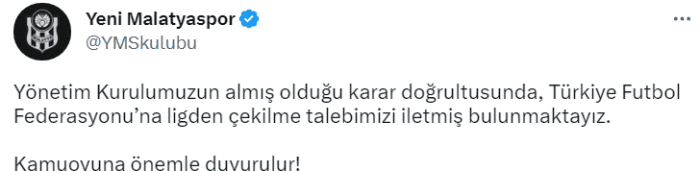 JRS直播网讯02月12日耶尼马拉耶士邦表示,在这个痛苦万分的时刻,俱乐部已经没有心思顾及足球,因此根据董事会决定,俱乐部向土耳其足协递交退出土甲联赛申请。