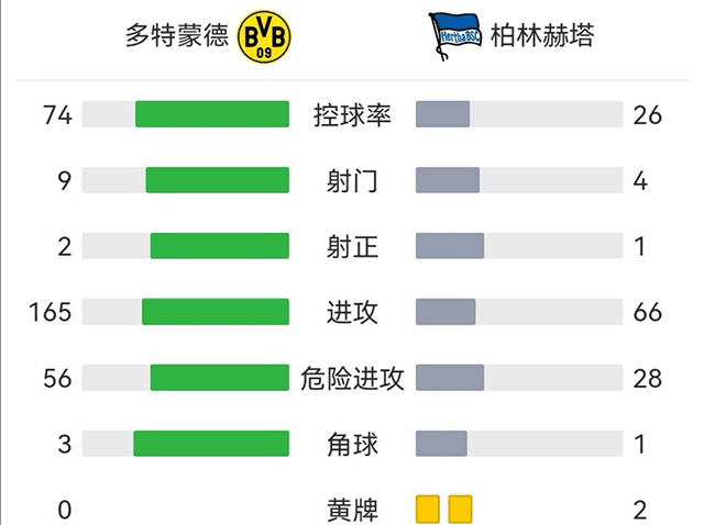 全场比赛结束,多特蒙德2-1柏林赫塔。