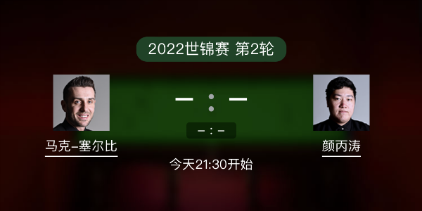斯诺克世锦赛第2轮上:04月22日 21:30 塞尔比vs颜丙涛