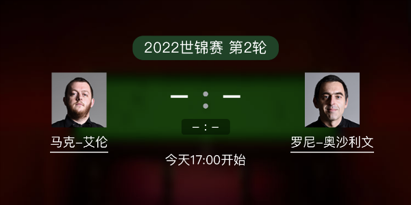 斯诺克世锦赛第2轮上:04月22日 17:00 马克-艾伦vs奥沙利文