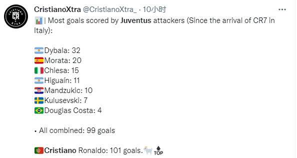 JRS直播网12月20日讯 消息,C罗2021年为尤文图斯打进20球,虽然离队已经半赛季,但他依然是尤文今年的头号射手。