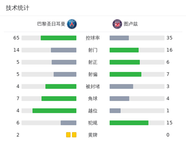最终巴黎2-0图卢兹。