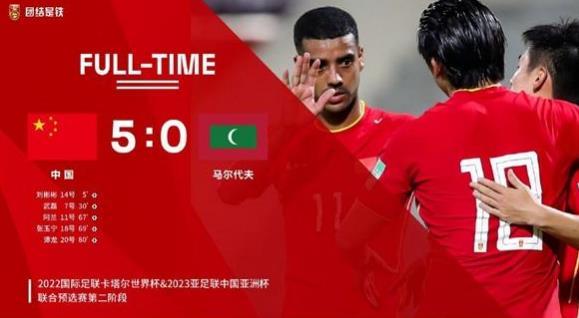 上半场0:2落后,让马尔代夫出现了焦急的心态,下半场,男足在13分钟里面由阿兰、张玉宁、谭龙打进三个进球,取得了一场5:0的大胜,晋级12强赛希望大增。