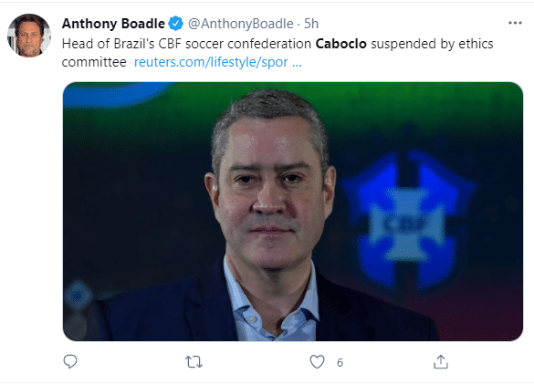卡博克洛最近备受指责,他此前被巴西足协的女性职员指控性骚扰和道德骚扰,随后又被曝出向国家队队长卡塞米罗以及主帅蒂特施压,因为他们不愿意参加本土美洲杯,甚至有消息称他想因此解雇蒂特。