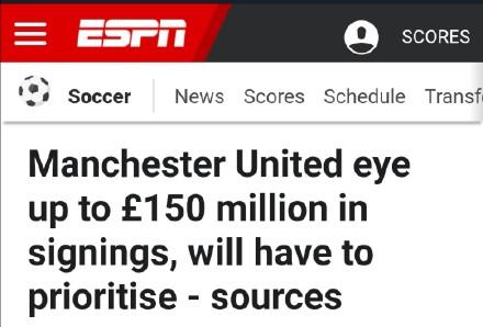 ESPN列出了曼联可能签下的球员,包括桑乔、凯恩、格拉利什、保-托雷斯、波特曼、瓦拉内、赖斯和马科斯-阿隆斯。此外,还将预计有三名球员转会离队,AC米兰希望永久签下达洛特,林加德也将就自己的未来和曼联进行一系列谈判。