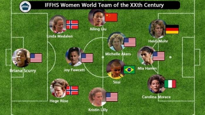 JRS直播网讯 国际足球历史统计联合会(IFFHS)日前评选出了20世纪(1901-2000)女足最佳阵容,美国五人入选,中国仅刘爱玲入选,孙雯落选。