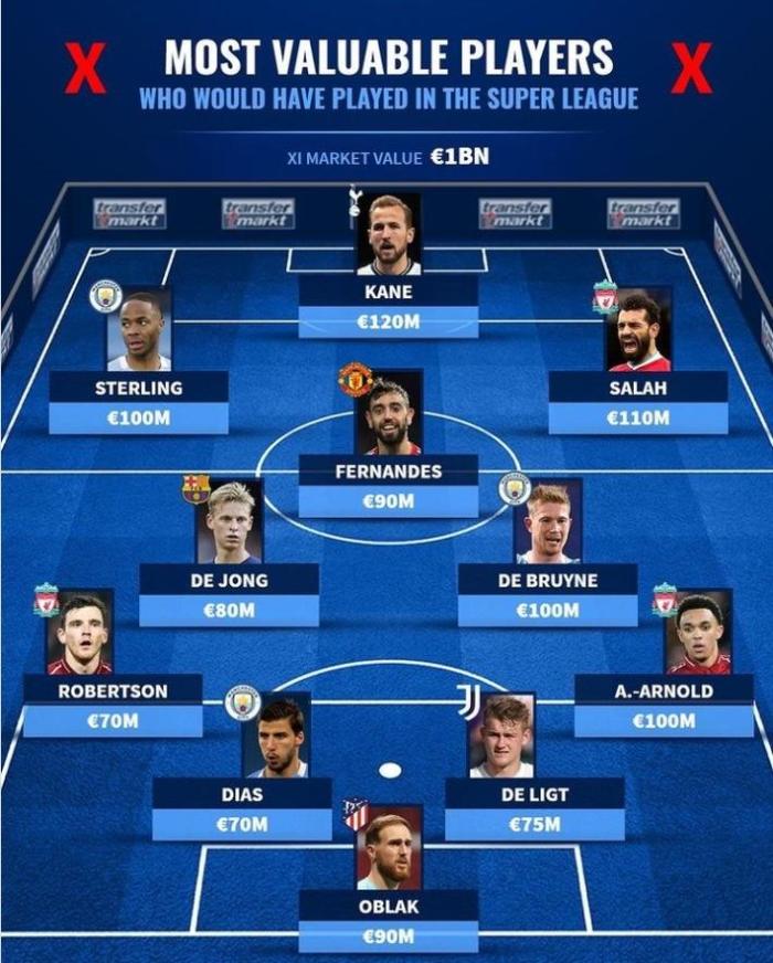 欧超联赛最贵阵容:
