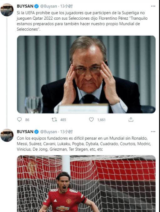 JRS直播网讯 近期,足坛最大的新闻或许就是皇马、曼联等12支球队成立了欧超联赛了。当然,欧超联赛成立之后,国际足联和欧足联都在阻止欧超联赛的成立,为此,他们甚至告诫球员,如果参加欧超联赛,那么他们将会无法参加世界杯和欧洲杯的比赛,这可能对球员的影响非常大,不过欧超主席兼皇马主席佛罗伦迪诺并不在乎,他表示球员依然可以参加世界杯,如果不能我们自己组织世界杯。