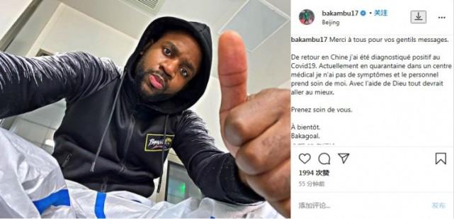 JRS直播网讯 北京时间3月5日凌晨,效力于中超豪门北京国安的外援巴坎布,在个人社交账号上发布消息,表示自己感染了新冠,目前正在接受隔离。巴坎布写道:“我在中国接受了检测,结果显示为阳性。目前我正在医疗中心接受隔离。我没有症状,有医院的员工看护着我。上帝保佑,目前一切都好。”