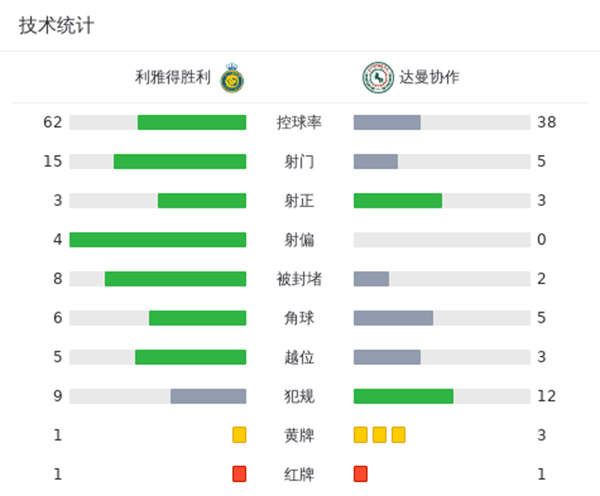 全场结束,利雅得胜利1-0达曼协作,晋级八强。
