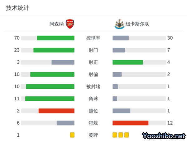 最终阿森纳0-2纽卡斯尔。