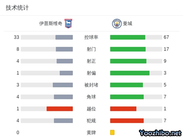 最终曼城6-0伊普斯维奇,积分来到38分,重返前四。