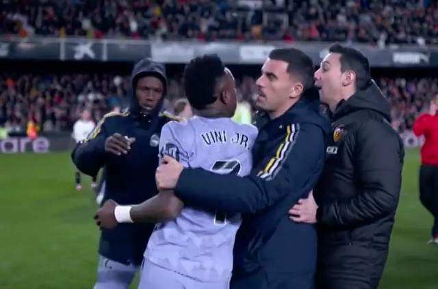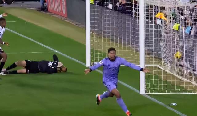 直接回到本场比赛的最后阶段。皇马在0-2落后的情况下,凭借小熊的两个进球追到2-2平。90分钟结束,裁判给出了7分钟的补时。而在补时阶段,裁判曾判罚给瓦伦西亚一粒点球,但随后他自己来到场边观看var,并且最终取消了点球。在这个过程中,耗时不低于2分钟。比赛第98分40秒左右,皇马右路传中,贝林厄姆头球破门。但裁判却在皇马传中时,突然吹停了比赛,皇马绝杀无效。