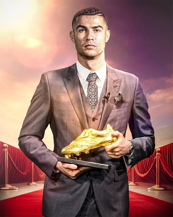 本场与布赖代合作的比赛,C罗在补时阶段头槌破门,打进本队锁定胜局的第4球。这也让他本年度的进球数定格在59场54球,他也力压姆巴佩、凯恩(52球)和哈兰德(50球),荣获了本年度的射手王。这也是C罗职业生涯第五次荣膺年度射手王,此前四次分别是2011年(60球)、2013年(69球)、2014年(61球)和2015年(57球)。