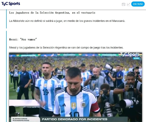梅西等人翻越广告牌去拦架,大马丁不满巴西安保,险些发生冲突,被阿根廷队友拉走。
