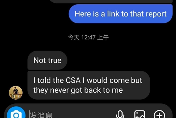 此前,名记白国华爆料称,伍小海因价格未谈拢拒绝了足协的归化邀请。而有热心球迷第一时间在社媒私信向伍小海求证,这一消息是否真实。伍小海先是询问对方在哪里看到了这个消息,随后亲口辟谣:“不是真的。我告诉中国足协我想来,但是他们一直没有回复我。”