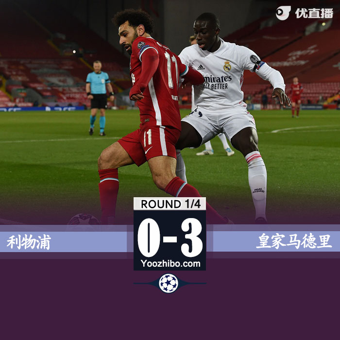 JRS直播网4月15日讯 北京时间04月15日星期四03:00,欧冠1/4决赛次回合利物浦主场迎战皇家马德里。上半场,库尔图瓦扑出萨拉赫单刀,本泽马射门折射中柱,红军狂攻无果,利物浦半场暂0-0皇马。下半场,双方互有攻守皆无明显破门机会。最终,皇马0-0总分3-1利物浦,晋级四强将对阵切尔西。