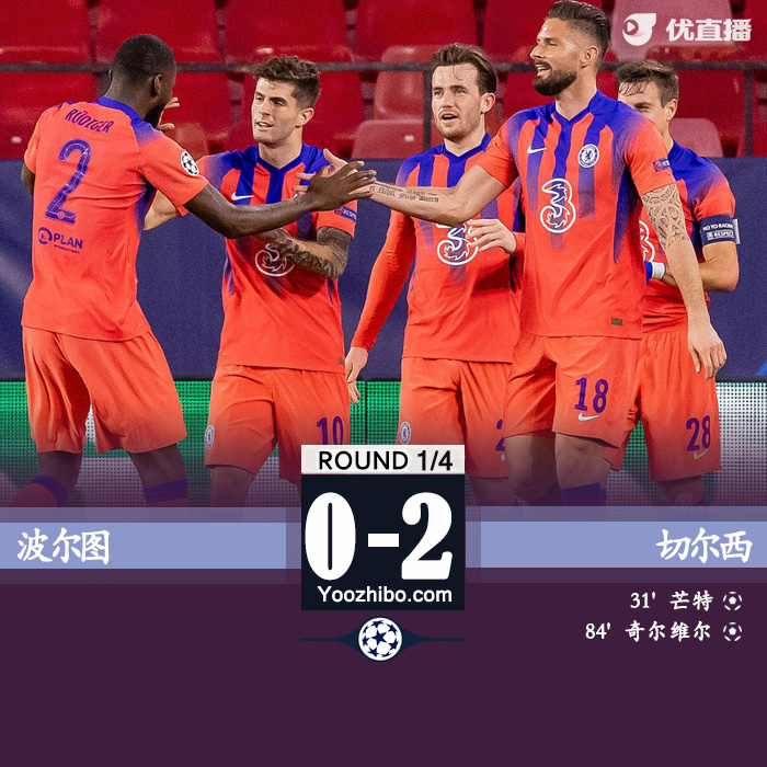 JRS直播网4月8日讯 北京时间04月08日星期四03:00,欧冠1/4决赛首回合波尔图迎战切尔西。上半场比赛,若日尼奥助攻,芒特破门,切尔西半场1-0领先波尔图,蓝军上半场仅仅一脚射门就取得进球。下半场,普利西奇射门中框,奇尔维尔扩大比分。最终,波尔图0-2不敌切尔西。两队4月14日的次回合交锋,仍将在皮斯胡安球场进行。