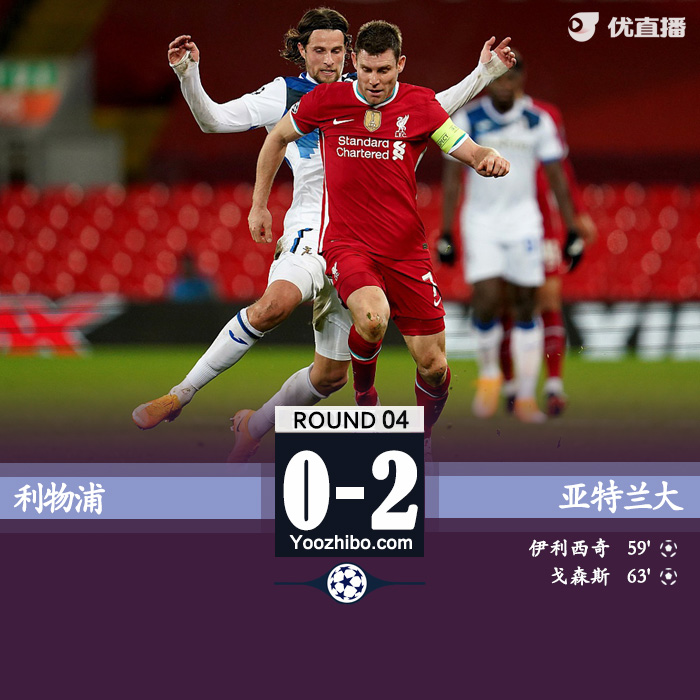 JRS直播网讯:北京时间11月26日04:00(英国当地时间25日20:00),2020/21赛季欧冠D组第4比赛日一场焦点战在安菲尔德球场展开争夺,利物浦主场0-2不敌亚特兰大,伊利西奇和戈森斯进球,利物浦3连胜被终结,但领跑小组积分榜。