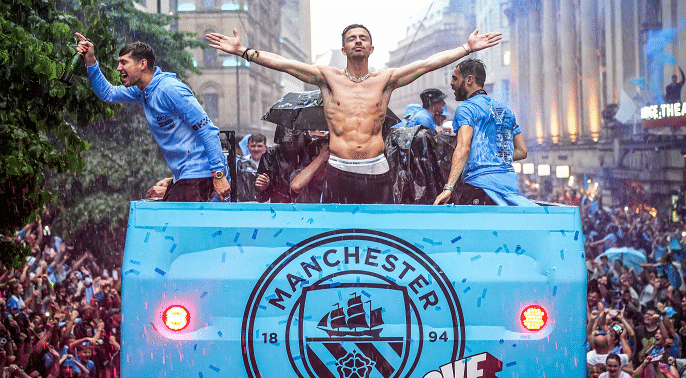 格拉利什依旧是人群中最抢镜的一个,被调侃是“摇子”的他坦言欧冠决赛后一直没合眼,离开伊维萨岛的酒店时依旧处于醉酒状态。格拉利什深受球迷、教练与队友们的喜爱,在游行中,他头上淋香槟,与队友们一起欢庆。