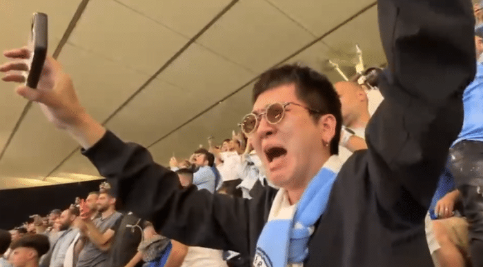 这场比赛中国歌手、盘尼西林乐队主唱张哲轩现场观战,他在伊斯坦布尔的现场目睹曼城夺冠,喜极而泣。一开始张哲轩拿着手机录制,随后他大声喊叫,庆祝曼城队史首座欧冠冠军奖杯到来。张哲轩眼含热泪,足以看出他对于曼城爱得深沉。