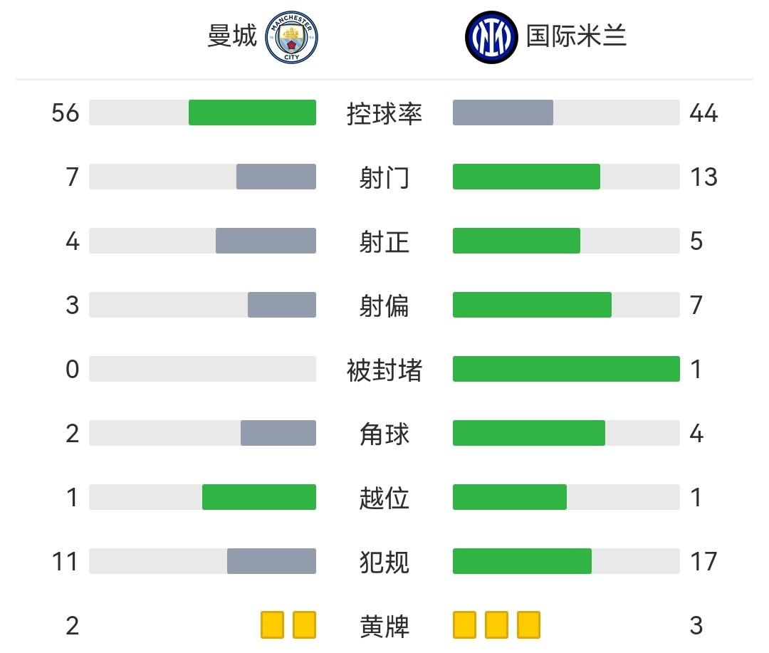 关键事件: 第67分钟,阿坎吉直塞,B席禁区右侧插上倒三角回敲,罗德里跟进推射得手,曼城1-0国际米兰!