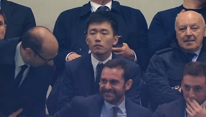 这场比赛国际米兰上半场完美开局,仅仅用了11分钟就取得两个进球,镜头给到张康阳,不同于身旁人的兴奋庆祝,张康阳面无表情,此前他因为场边疯狂庆祝被外国媒体和球迷们批评,被认为是败人品。如今来到这场万众瞩目的比赛,张康阳还是很谨慎的,当然结果是好的,他的国际米兰拿下胜利。