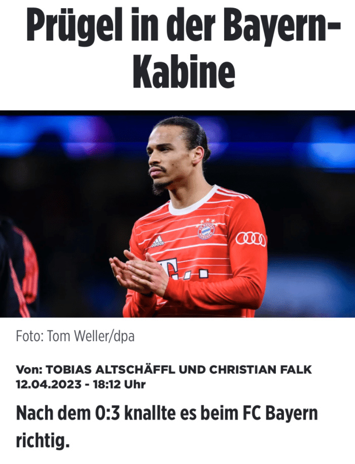 JRS直播网04月13日讯 凌晨,来自德国权威媒体《图片报》的透露,在欧冠完败曼城赛后,拜仁两位射手马内与萨内爆发激烈冲突,马内赛后甚至在更衣室用拳头击打了萨内的面部。