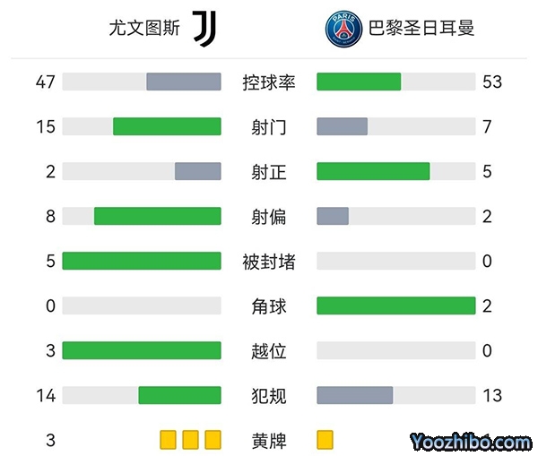 全场比赛结束,最终尤文图斯1-2巴黎圣日耳曼。