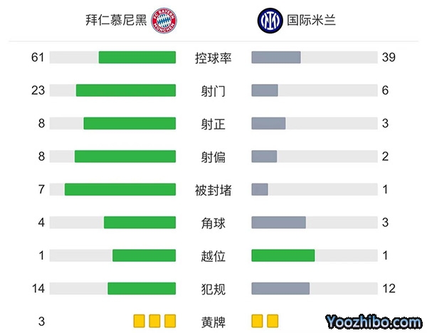 全场比赛结束,最终拜仁2-0国米,小组赛全胜晋级。
