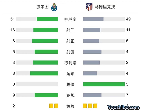 JRS直播网讯:北京时间11月2日1:45,欧冠小组赛第6轮,马德里竞技客场挑战波尔图,本场比赛主裁判是丹尼尔-奥萨托。上半场,塔雷米闪击破门,加莱诺推射被奥布拉克扑出,欧斯塔基奥推射建功。下半场,塔雷米推射被奥布拉克挡出,菲利克斯内切远射被门将没收,奥布拉克多次救险,马尔卡诺自摆乌龙,最终,马竞1-2波尔图小组垫底出局,波尔图锁定小组第一。