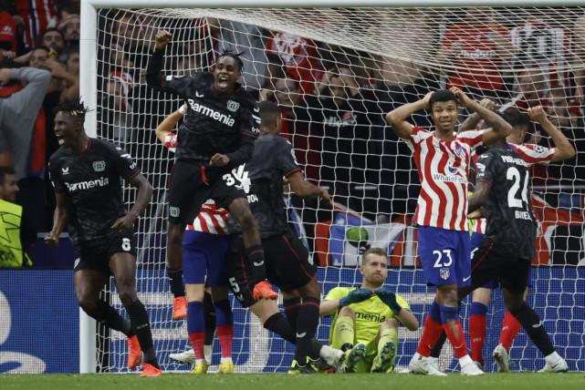 上半场,做客的勒沃库森先声夺人。第9分钟,迪亚比单刀打破僵局。第22分钟,中超旧将卡拉斯科人右脚大力低射为马竞扳平比分。29分钟时,勒沃库森2-1再次领先。阿米里前场抢断分球,奥多伊点球点附近右脚低射破门。