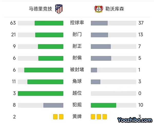 全场结束,马德里竞技2-2勒沃库森!
