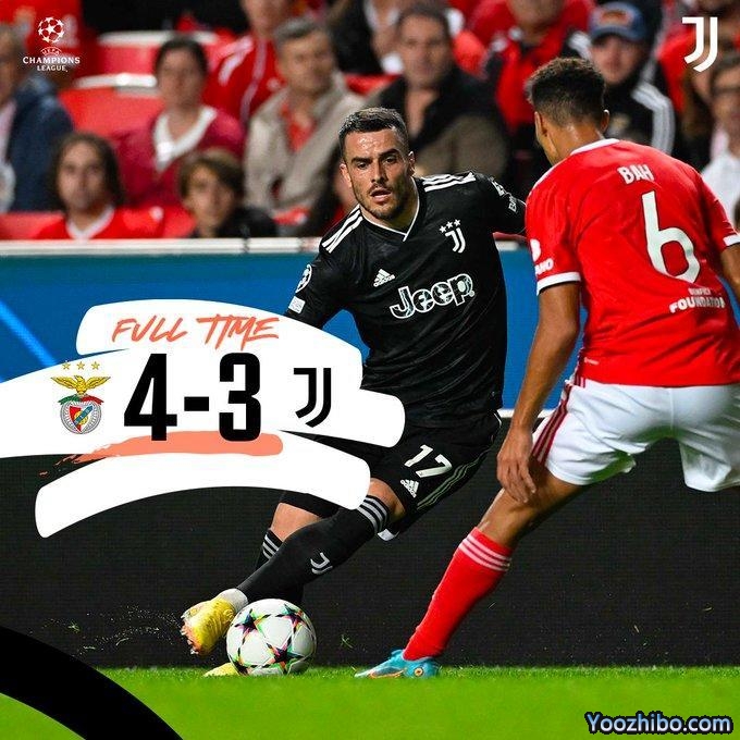 JRS直播网10月26日,尤文图斯在欧冠小组赛中3-4不敌本菲卡,小组赛5轮仅1胜,其余全输,积3分,提前一轮小组出局。