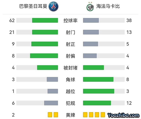 全场结束,巴黎圣日耳曼7-2海法马卡比!
