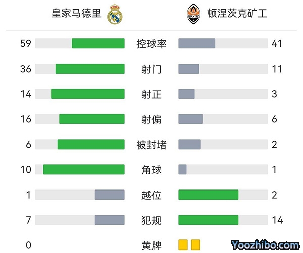 全场比赛结束,最终皇马2-1顿涅茨克矿工,小组赛三连胜继续排名榜首。