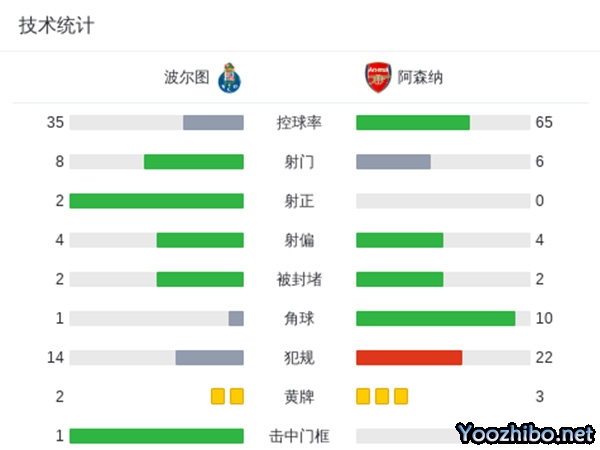 最终全场比赛结束,阿森纳0-1波尔图。
