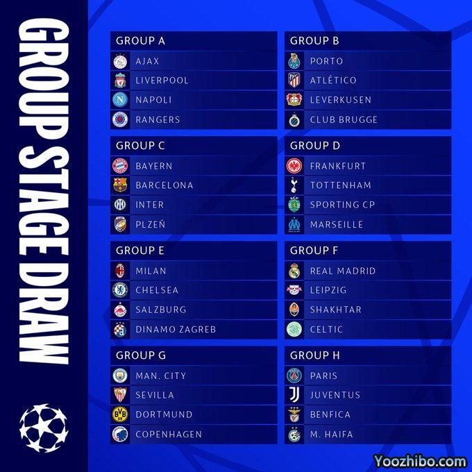 JRS直播网08月26日讯 今天凌晨,2022-23赛季欧冠小组赛抽签结果出炉,拜仁、巴萨、国米同组缔造死亡之组,卫冕冠军皇马则拿到上上签。