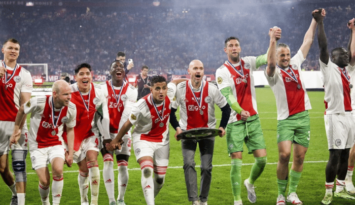JRS直播网06月20日讯 在滕哈格的率领下,欧冠4冠王阿贾克斯强势爆发,在过去一个赛季顺利拿到了荷甲冠军,而且在欧冠踢出了很有竞争力的一面,小组赛6连胜狂飙,一度成为了大黑马。阿贾克斯的疯狂主要体现在进球方面,他们34轮荷甲打进了98球,只丢了19球,净胜球高达79个,堪称荷甲独一档的攻守表现。