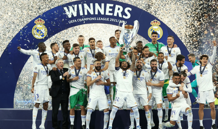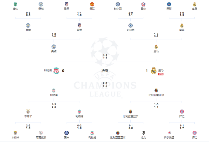 决赛遇到的是利物浦,本赛季也取得了巨大成功的球队,4年前欧冠决赛的重演。皇马在几乎全场被动,射门数只有4-24的情况下,依靠着维尼修斯的进球,1-0击败对手,在巴黎成功夺冠,加冕欧冠14冠王。