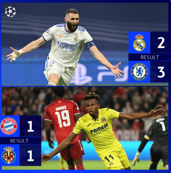JRS直播网04月13日讯今天凌晨,两场欧冠1/4决赛落下帷幕,皇马和比利亚雷亚尔分别淘汰切尔西和拜仁,进入四强。
