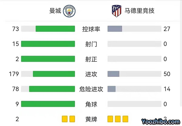 全场比赛结束,最终,曼城1-0马竞。