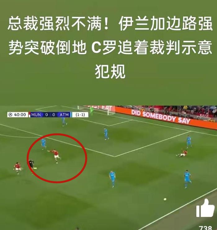 在伊兰被放倒之后,C罗不仅大声的向裁判示意马竞球员犯规,或许是因为裁判没有理财,C罗更是一路追着裁判不断的抗议申诉,可惜的是C罗的努力并没有得到回报。