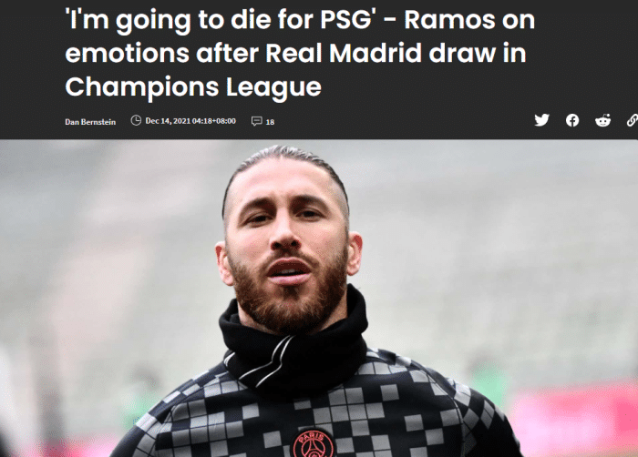 JRS直播网12月14日讯 昨晚,巴黎圣日耳曼在欧冠16强中抽到皇家马德里,拉莫斯将迎战旧主,抽签结果出来后,这位西班牙传奇中卫接受了媒体采访。