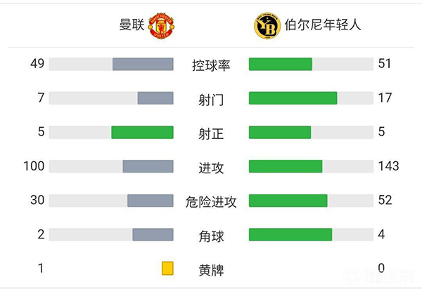 全场比赛结束,曼联1-1年轻人。