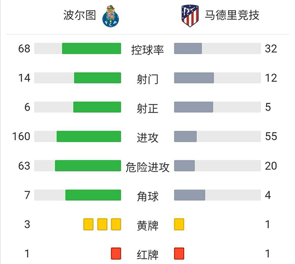 JRS直播网讯:北京时间12月8日04:00,欧冠小组赛B组第6轮迎来一场出线关键战,马德里竞技客场挑战波尔图。上半场,苏亚雷斯开场伤退,格列兹曼失良机,奥布拉克屡次救险。下半场,格列兹曼传射建功,卡拉斯科、温德尔与波尔图替补门将马尔凯辛先后在冲突中染红,安赫尔-科雷亚与德保罗终场前接连破门杀死悬念,塞尔吉奥-奥利韦拉点射扳回一城。最终,马竞客场3-1击败波尔图,晋级欧冠16强;后者则进入欧联杯淘汰赛附加赛。