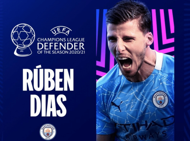 欧冠最佳后卫:曼城中卫鲁本-迪亚斯和巴萨女足帕雷德斯;