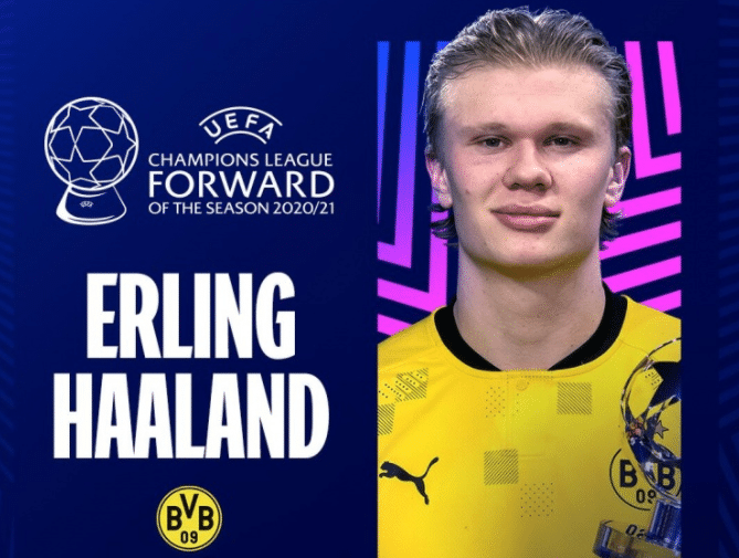 欧冠最佳前锋:多特蒙德的哈兰德和巴萨女足的埃尔默索;