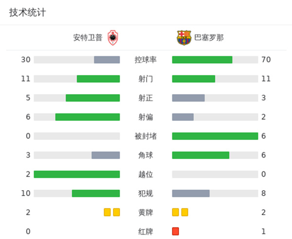 最终巴塞罗那客场2-3不敌安特卫普。