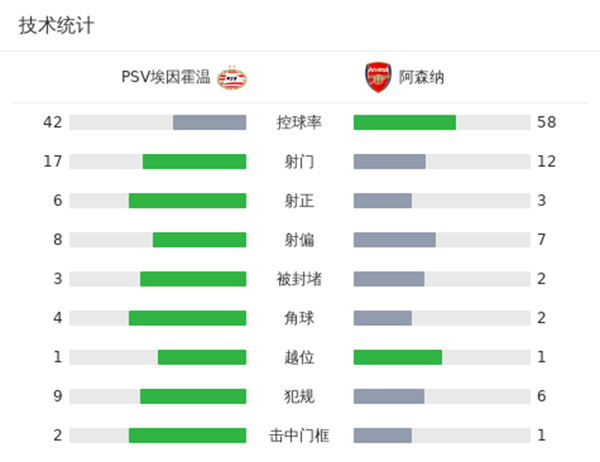 全场比赛结束,阿森纳1-1埃因霍温,小组赛4胜1平1负头名收官!